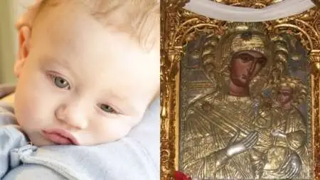 Το πήρα, το φίλησα σκουπίζοντας τα αίματα και το έσφιξα στην αγκαλιά μου, γιατί ήταν ο χειμώνας πολύ παγερός. Όταν έφτασα στο σπίτι, δεν ήταν κανείς. Είπα μέσα μου: «Ο Θεός είναι μαζί μου» και αφού το έπλυνα το τύλιξα σε μία παλιά μου πουκαμίσα και το σταύρωσα προσευχόμενη:«Παναγία μου Προυσιώτισσα, χαρίτωσε το να μην κλάψει!». Και το θαύμα έγινε!!!… Το μωρό για δύο χρόνια, δεν έκλαψε! Το τάϊζα κρυφά και το κοίμιζα κάτω από το κρεβάτι μας.