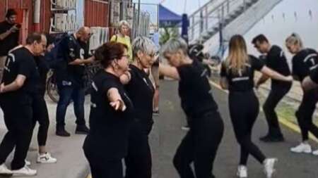 Μάλιστα, δεν ήταν λίγοι οι επιβάτες βγήκαν στα μπαλκόνια των καμπινών τους και απαθανάτιζαν με βίντεο και φωτογραφίες τους χορευτές.