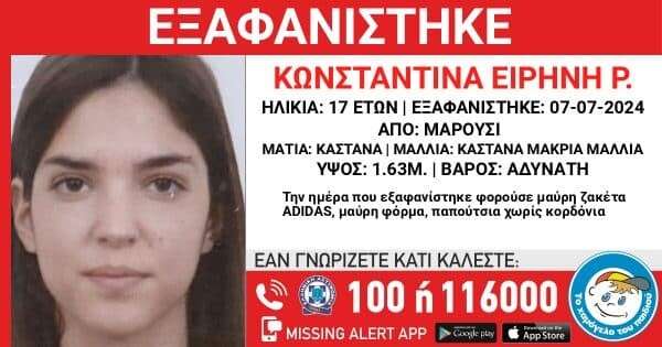 Την κινητοποίηση των Αρχών έχει προκαλέσει η εξαφάνιση της 17χρονης Κωνσταντίνας από το Μαρούσι.