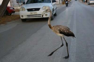 Ξαφνικά επάνω στην λεωφόρο στη μέση του δρόμου βλέπω ένα ασυνήθιστο θέαμα….. ένα πουλί να περπατάει.