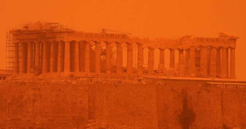 Απόκοσμες εικόνες καταγράφηκαν σε όλη τη χώρα λόγω της αφρικανικής σκόνης, την οποία οι ισχυροί νοτιάδες κατηύθυναν προς πολλές περιοχές.