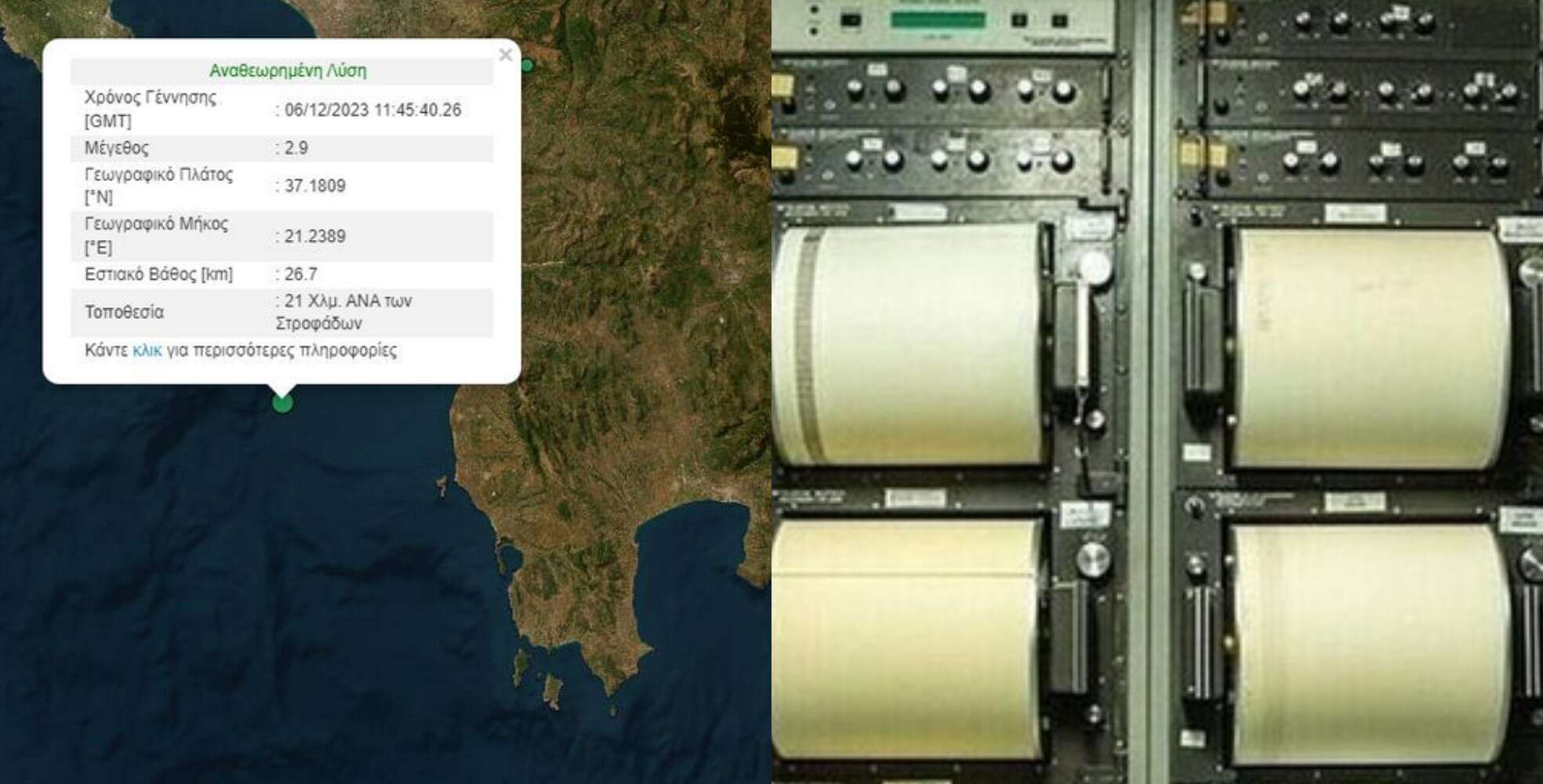 Σεισμός μεγέθους 2,9 βαθμών της κλίμακας Ρίχτερ σημειώθηκε πριν από λίγο στο Ιόνιο Πέλαγος.