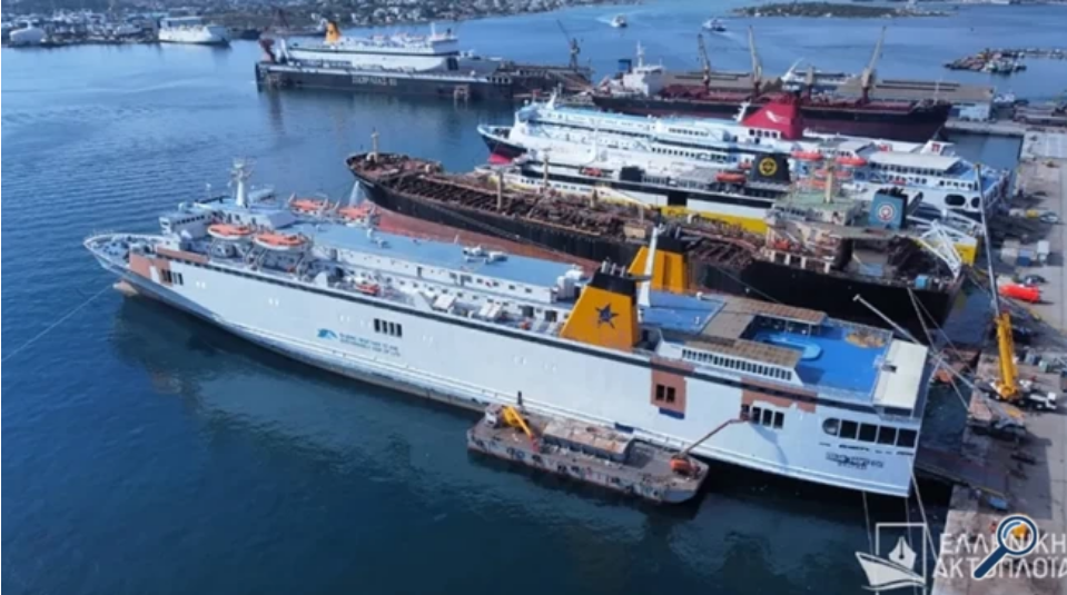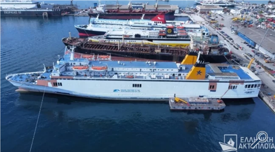 Στις φωτογραφίες, το πλοίο της BLUE STAR FERRIES έχει αρχίσει να βάφεται σε λευκό χρώμα, ενισχύοντας τις φήμες που θέλουν το πλοίο να φοράει τα σινιάλα της ANEK LINES και να ταξιδεύει για λογαριασμό της κρητικής εταιρείας στις γραμμές της μεγαλονήσου.