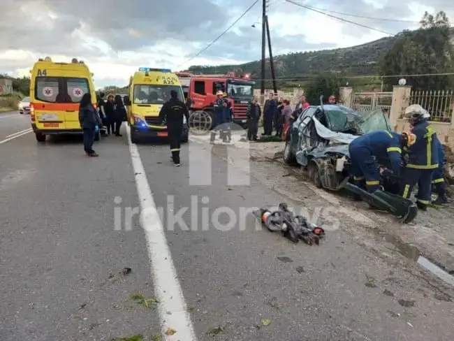 Η Ζαχαρένια Τοράκη, 51 ετών, έχασε τη ζωή της σε τροχαίο το απόγευμα της Τετάρτης 2 Μαρτίου, στον δρόμο Ηρακλείου-Μοιρών, στο ύψος του 11ου χιλιομέτρου προς Αθανάτους. Η γυναίκα ήταν γνωστή στην τοπική κοινωνία, καθώς εργαζόταν επί σειρά ετών στον χώρο των εκπαιδευτών οδήγησης.