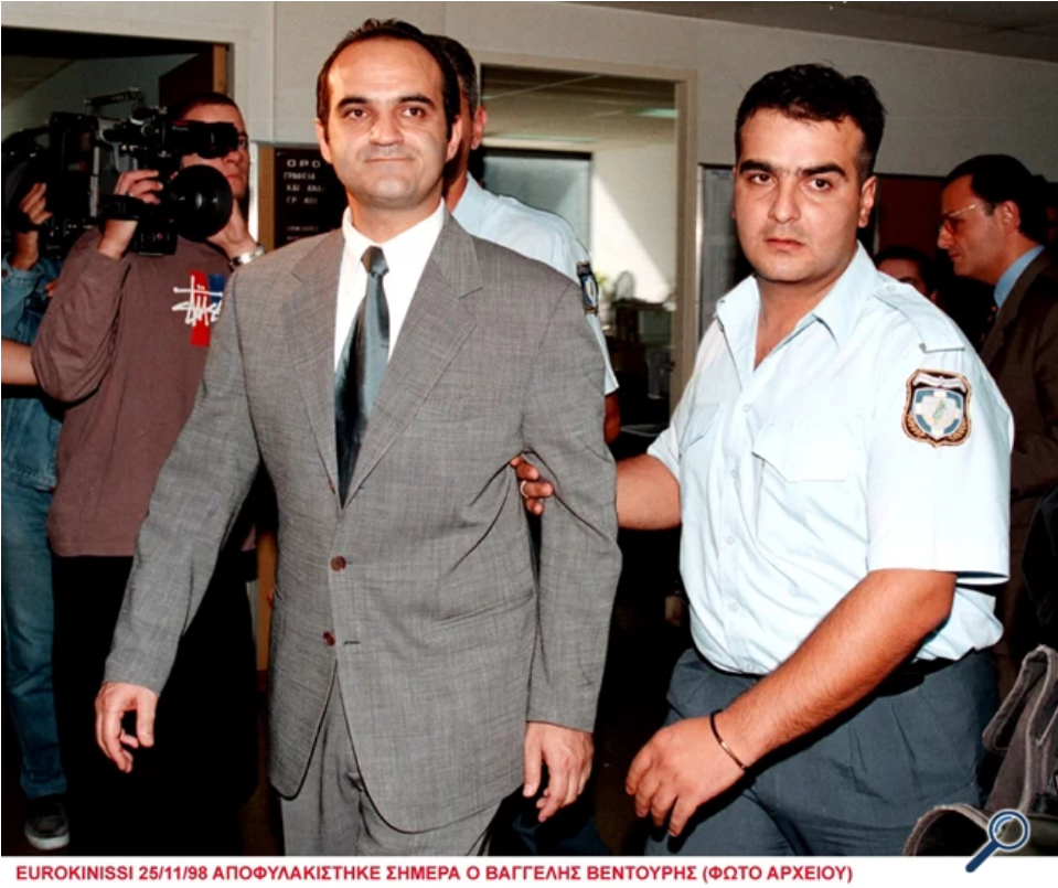 Ο Βαγγέλης Βεντούρης είχε μπει για 95 ημέρες στη φυλακή, προτού οι δύο άνδρες βρεθούν πρόσωπο με πρόσωπο στο γραφείο της 6ης ανακρίτριας Πειραιά, Μαρίας Τσιριμώκου.