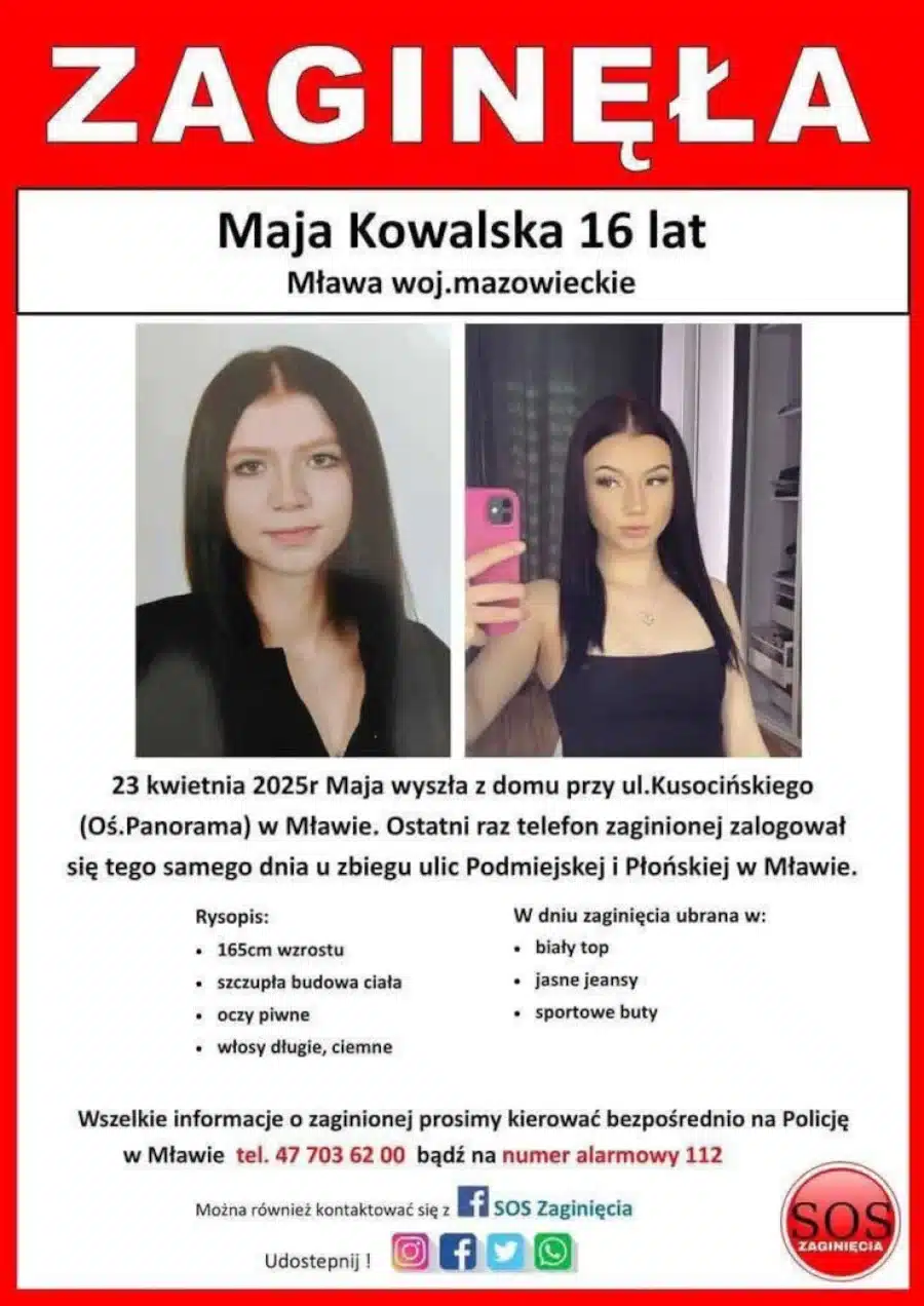 Την επόμενη μέρα φέρετε να υπάρχει δραστηριότητα στα social media της 16χρονης και σύμφωνα με τις πολωνικές αρχές ο 17χρονος ήταν αυτός που έκανε τις σχετικές αναρτήσεις ενώ μετά από μέρες παρατάει το κινητό της σε σιδηροδρομικές γραμμές.