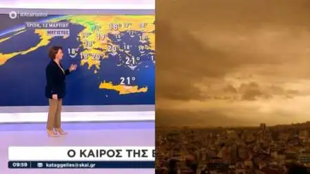 Σύμφωνα με την έμπειρη μετεωρολόγο, οι νοτιάδες σε συνδυσμό με την αφρικανική σκόνη, φέρνει φαινόμενα δυσάρεστα μαζί με τις σημερινές (11/3) και αυριανές (12/3) βροχές, με τους ανέμους στα 8 μποφόρ και τη θερμοκρασία να ανεβαίνει στους 21 βαθμούς, ενώ για το ίδιο σκηνικό μας ενημέρωσε και ο Κλέαρχος Μαρουσάκης. Όλη η εβδομάδα, δε, θα κυλήσει με άστατο καιρό, εκφραζόμενο κυρίως από απογευματινές μπόρες, που θα μας απασχολήσουν το λιγότερο μέχρι το Σάββατο.