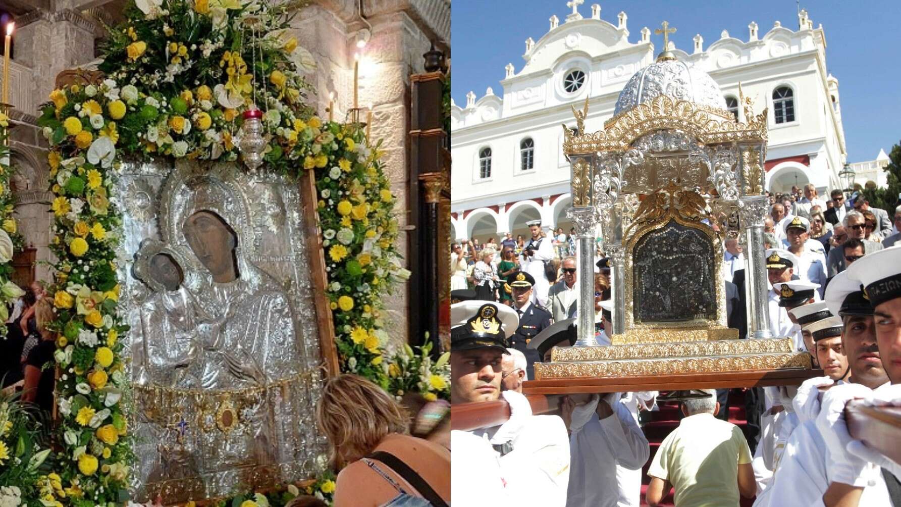Το μεγαλύτερο προσκύνημα κάθε χρόνο γίνεται στην Τήνο με τους πιστούς γονυπετείς να φτάνουν στο ναό της Ευαγγελίστριας για να εκπληρώσουν το τάμα τους στην εικόνα της Παναγίας. Ο Ιερός Ναός Ευαγγελιστρίας χτίστηκε στο σημείο όπου βρέθηκε η Εικόνα του Ευαγγελισμού της Θεοτόκου.