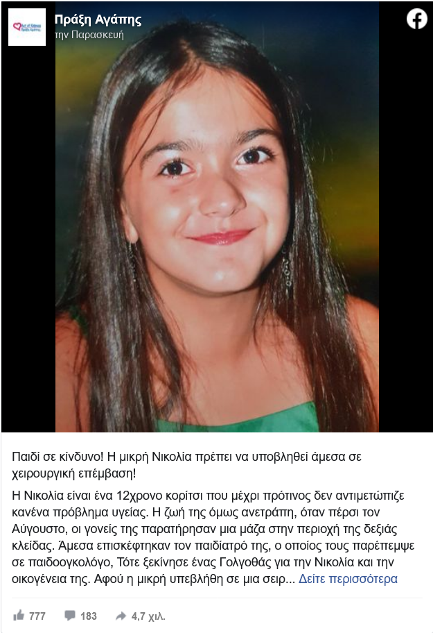 Δείτε την εκστρατεία της Νικολίας εδώ: https://act-of-kindness.org/…/support-12years-old-nikolia/