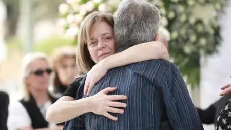 Κηδεία Καίτης Κωνσταντίνου: «Σπάραξαν» όλοι με το στεφάνι που της έστειλαν οι φίλες της