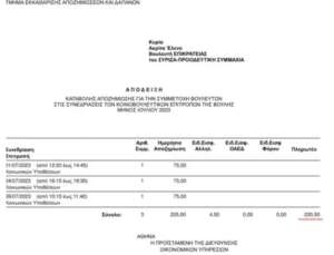 Η κυρία Ακρίτα συμμετείχε τον Ιούλιο σε τρεις συνεδριάσεις, εξ ου και τα 220 ευρώ, που έλαβε, επιπλέον των 4.832,25 ευρώ.