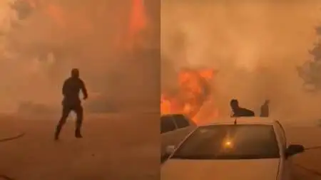 Οι στιγμές που καταγράφηκαν ήταν δραματικές, με ένα σπίτι να έχει τυλιχτεί στις φλόγες και τους κατοίκους να τρέχουν πανικόβλητοι μαζί με τους αστυνομικούς έτσι ώστε να αποφύγουν τις πύρινες γλώσσες.