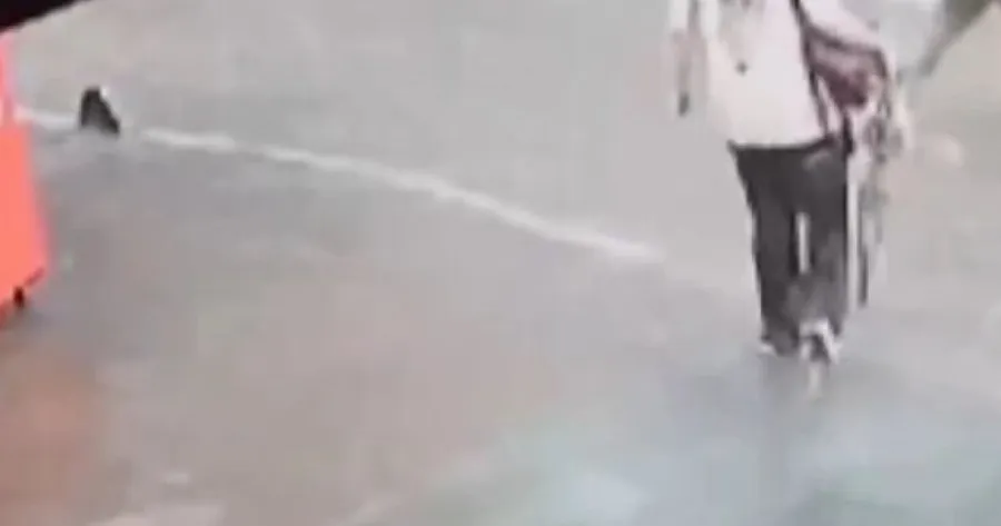 Το βίντεο δείχνει τους δύο άτυχους Τούρκους, την 23χρονη και τον 44χρονο που πάτησαν σε έδαφος που είχε πλημμυρίσει