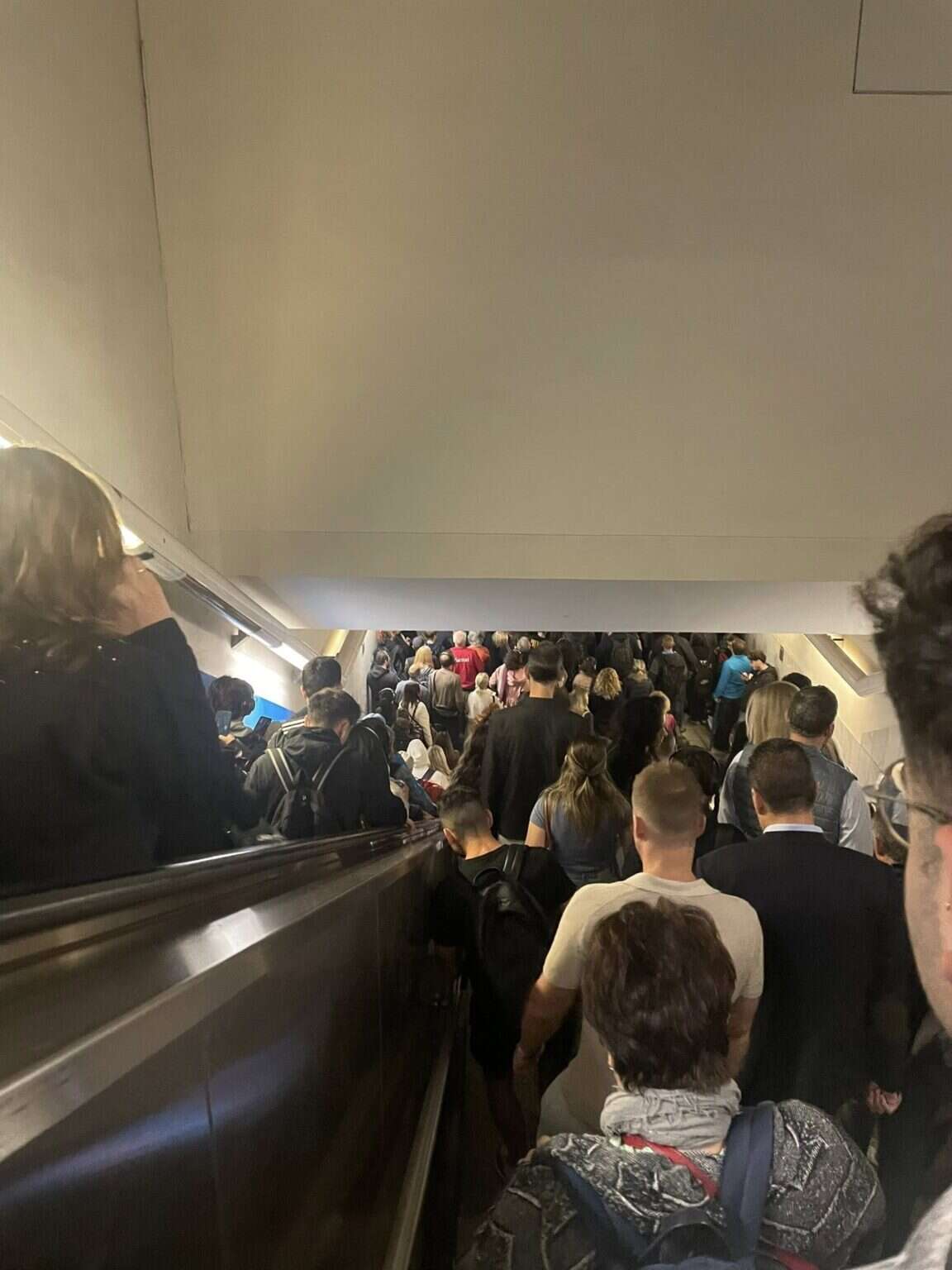 Λίγο μετά τις 08:00, εκατοντάδες επιβάτες που κατευθύνονταν προς εργασία ή αεροδρόμιο βρέθηκαν εγκλωβισμένοι για αρκετή ώρα στον σταθμό, αδυνατώντας να επιβιβαστούν στους συρμούς λόγω του μεγάλου όγκου επιβατών.