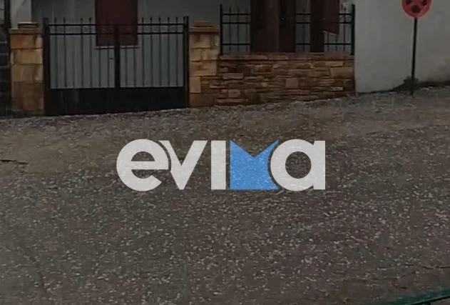 Χαλαζόπτωση σημειώθηκε σήμερα, Παρασκευή, το απόγευμα, σε αρκετές περιοχές της δημοτικής ενότητας Κύμης, στην Εύβοια.