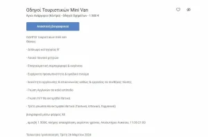 ΕλλάδαΖητούνται οδηγοί τουριστικών Mini Van με μισθό στα 1500€