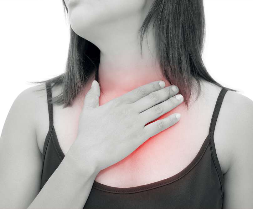 Επιπλέον μπορεί να υπάρχει βήχας, καταρροή, δυσφαγία, επεισόδια πνιγμονής και αίσθηση σφιξίματος ή «βάρους» ή ξένου σώματος στον λαιμό», επισημαίνει η ειδικός.