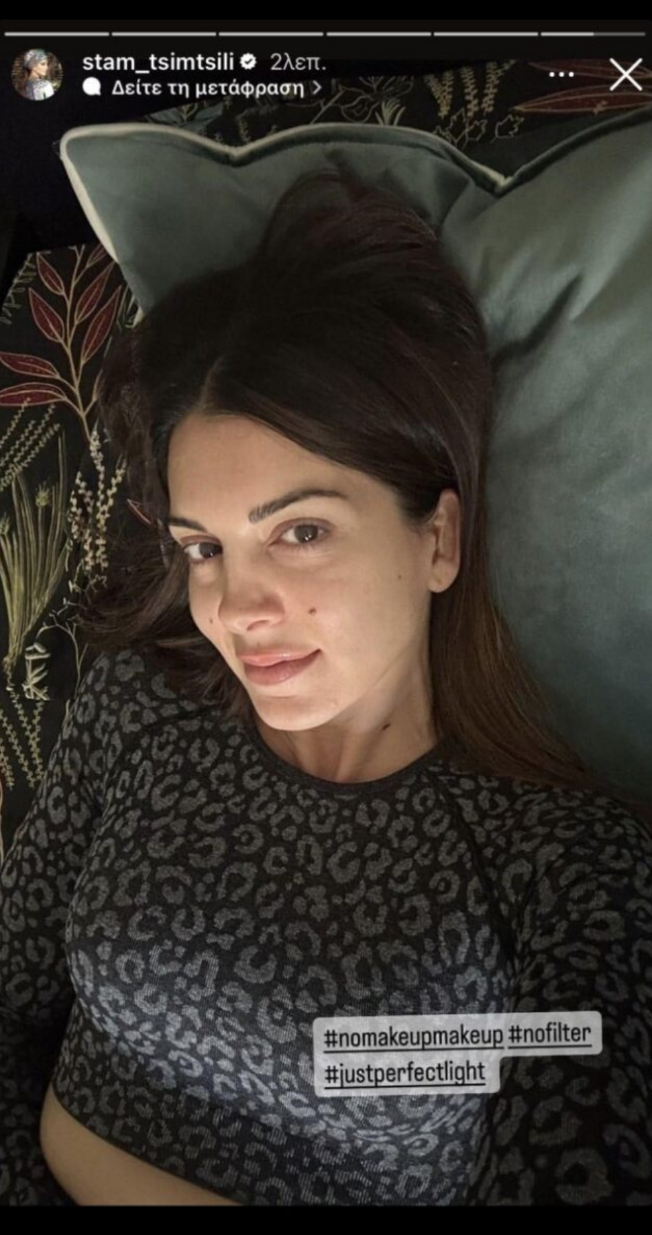 “Χωρίς make up, χωρίς φίλτρο, απλά τέλειος φωτισμός” έγραψε -στα αγγλικά- πάνω στην ανάρτησή της η Σταματίνα Τσιμτσιλή.
