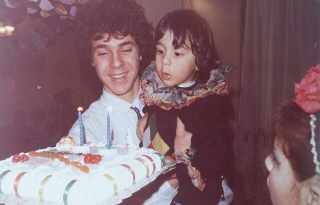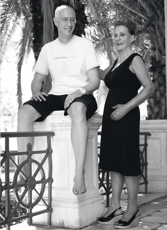 Ο make up artist Αχιλλέας Χαρίτος με τη μητέρα του Ιουλίττα, 2010, στις σκάλες του Baltazar
