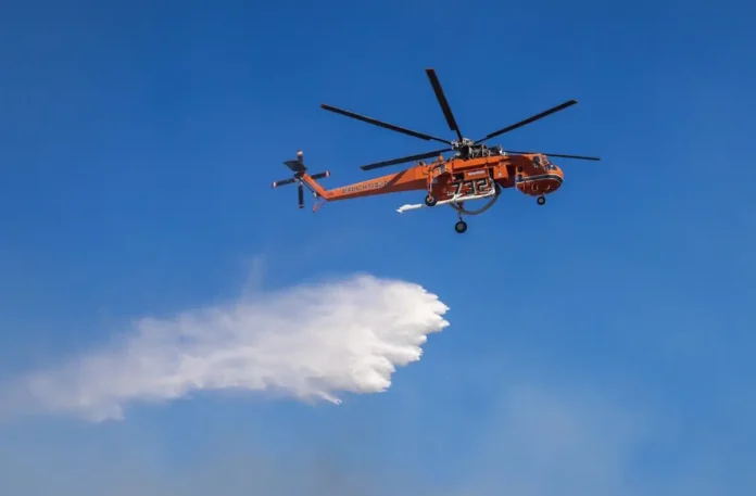 Ελικόπτερο τύπου Erickson που επιχειρούσε στην φωτιά στον Ασπρόπυργο έκανε αναγκαστική προσθαλάσσωση στον κόλπο της Ελευσίνας – Σώοι οι τρεις χειριστές