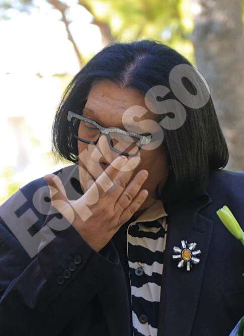 Με ένα navy blue κουστούμι με μαύρο πουκάμισο και κρατώντας μια ανθοδέσμη με λευκούς κρίνους τυλιγμένη με τούλι, ο Ανδρέας Ευαγγελόπουλος κατευθύνθηκε προς τον αγαπημένο του με δάκρυα στα μάτια.