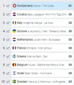 Αξίζει να σημειώσουμε πως τα τελευταία επτά χρόνια οι δημοσκοπήσεις της Eurovision που προβλέπουν τον μεγάλο νικητή έπεσαν μέσα στο 100% ενώ και το 2023 είχε γίνει η προβλέψει 2 μήνες πριν από τον διαγωνισμό πως η Σουηδία θα κέρδιζε.