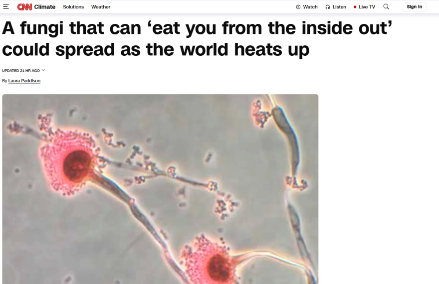 Το Aspergillus fumigatus, που προτιμά πιο εύκρατα κλίματα, αναμένεται να αυξήσει την εξάπλωσή του κατά 77,5% έως το 2100, εκθέτοντας εν δυνάμει 9 εκατομμύρια ανθρώπους μόνο στην Ευρώπη.