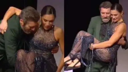 Ειδικότερα, εμφανίστηκε πρώτα ο ίδιος στην σκηνή και έπειτα πήρε αγκαλιά την Γεωργία Καλτσή και την τοποθέτησε στο αμαξίδιό της.