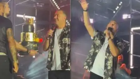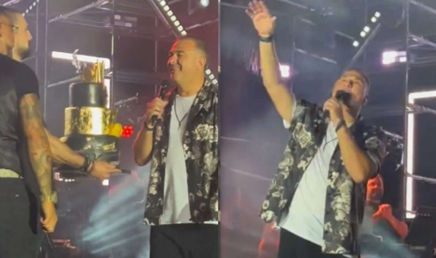 Ο τραγουδιστής εκεί που τραγουδούσε είδε ξαφνικά μία τριώροφη τούρτα να εμφανίζεται μπροστά του ενώ ήταν στη σκηνή και σαν να είχαν συνωμοτήσει και οι πάνω από 3.000 θεατές που τον απολάμβαναν στη συναυλία, άρχισαν να του τραγουδούν το γνωστό γενέθλιο τραγουδάκι, με τις ευχές να πέφτουν βροχή.