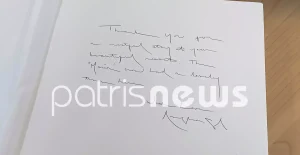 Το σημείωμα αυτό δημοσιοποίησε σήμερα το patrisnews και… αν καταφέρει κάποιος να το διαβάσει, καταλαβαίνει ότι όλο το καστ της ταινίας, πέρασε εκεί όμορφες στιγμές.
