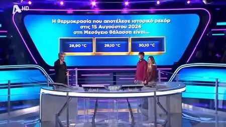 Στο επεισόδιο του «Money Drop» που παρακολουθήσαμε το βράδυ της Παρασκευής, 7 Φεβρουαρίου 2025, στον Alpha, το ζευγάρι των παικτών δεν κατάφερε να φύγει με κάποιο έπαθλο από το παιχνίδι καθώς έχασαν τα πάντα σε μια μόνο ερώτηση.