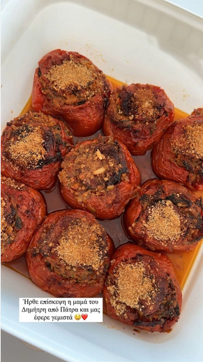 «Ήρθε επίσκεψη η μαμά του Δημήτρη από την Πάτρα και μας έφερε γεμιστά», έγραψε η ίδια στο Instagram story.