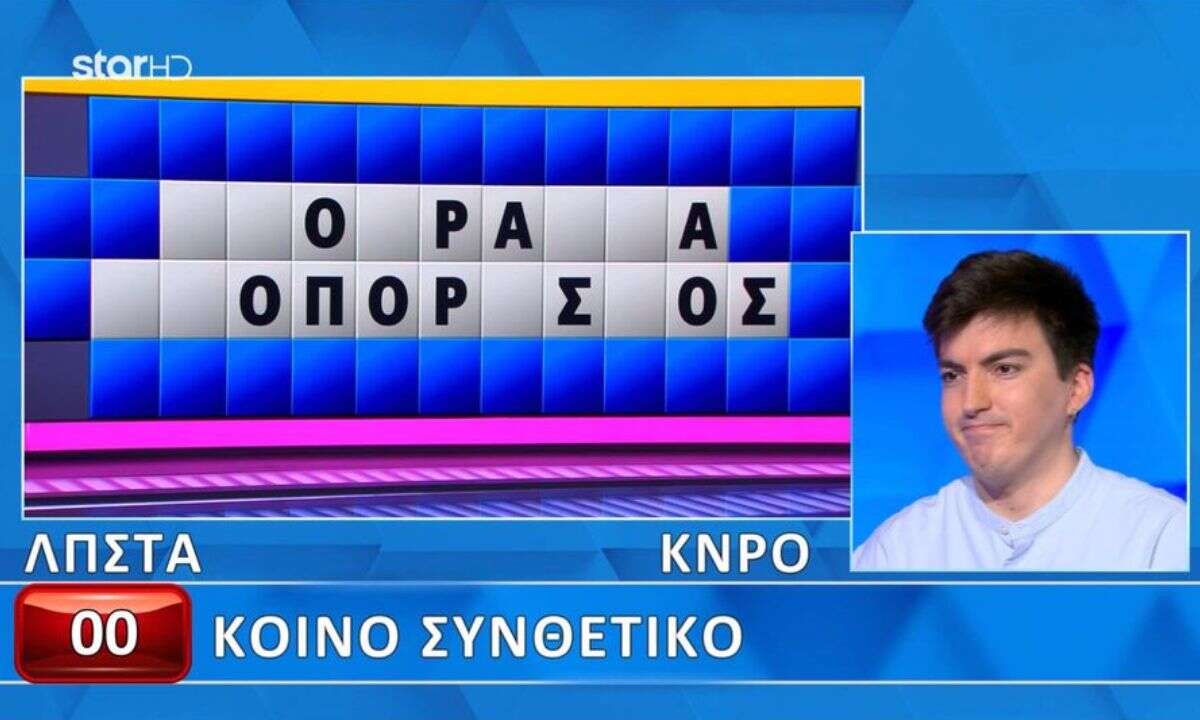 Στον τελικό η κατηγορία ήταν κοινό συνθετικό. Μόνο η μία λέξη κάπως φαινόταν, αλλά τρέχα γύρευε κι αυτή. Δεν το έλυσε ο Δημήτρης, ο φάκελός του είχε μόλις 2.000 ευρώ. Οπότε, όλα καλά.