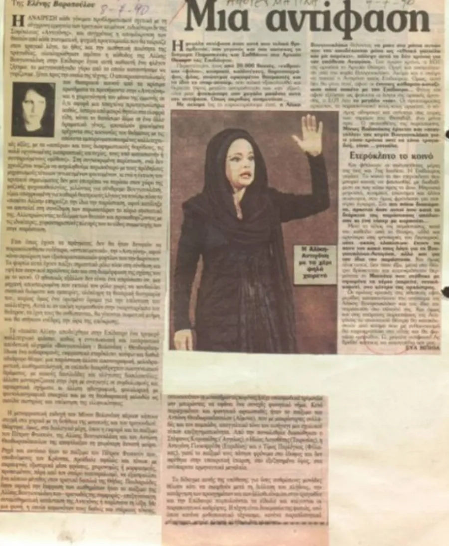 Το 1990 στην Αντιγόνη του Σοφοκλή έπαιζε η Αλίκη Βουγιουκλάκη στο Αρχαίο Θέατρο Επιδαύρου, και προκάλεσε θύελλα αντιδράσεων και ποικίλων κριτικών.