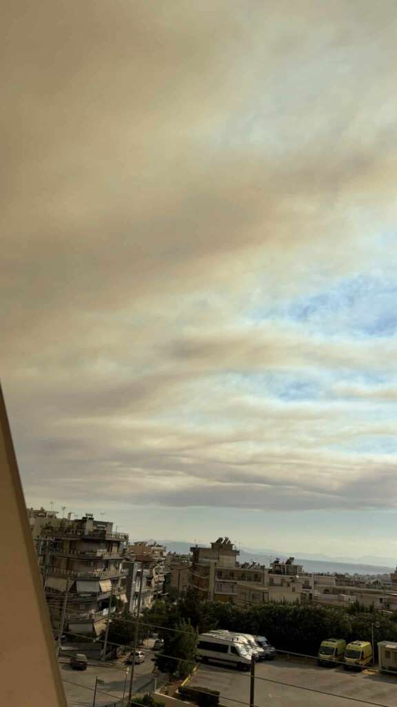 Κόκκινα και μαύρα σύννεφα πάνω από την πόλη – Στάχτες αιωρούνται στις πιο βόρειες περιοχές της Αθήνας, ενώ υπάρχει και οσμή καμένου