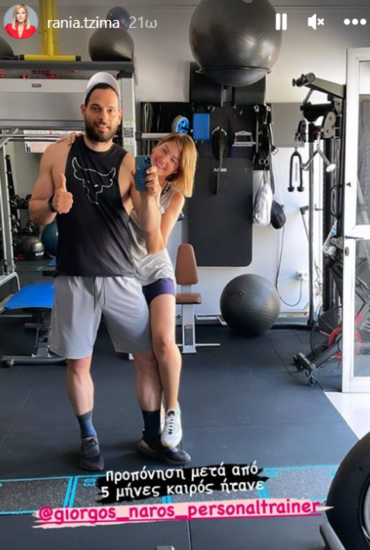 Μάλιστα, το Σάββατο, το μεσημέρι, ανάρτησε ένα στιγμιότυπο στον προσωπικό της λογαριασμό της στο Instagram, ποζάροντας μέσα στο γυμναστήριο, πίσω από τον personal trainer της, Γιώργο Νάρο και το συνόδευσε με τη λεζάντα “Προπόνηση μετά από πέντε μήνες, καιρός ήταν”.