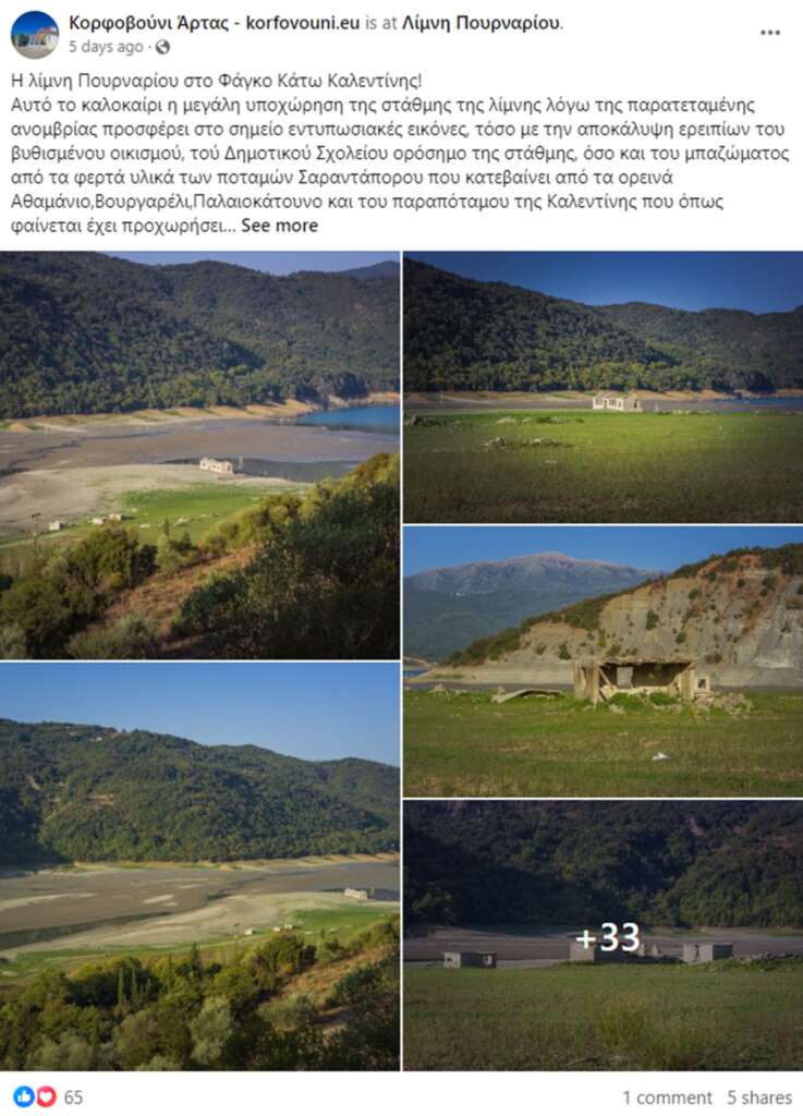 LifestyleΆρτα: Η ξηρασία αποκάλυψε βυθισμένο οικισμό στην τεχνητή λίμνη του Πουρναρίου