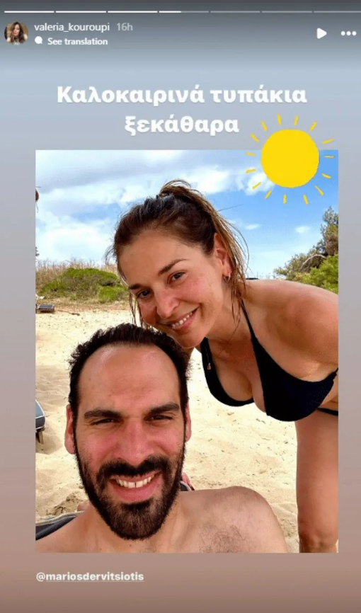 Στις φωτογραφίες που δημοσίευσε, η Βαλέρια και ο σύντροφός της ποζάρουν με τα μαγιό τους στην παραλία, φανερά χαλαροί και ευδιάθετοι, απολαμβάνοντας ξέγνοιαστες στιγμές μαζί.