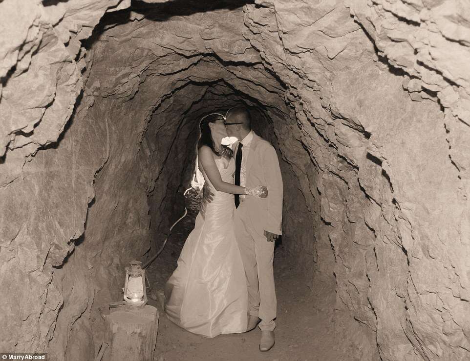 Οι μελλόνυμφοι μπορούν να διαλέξουν αν θα παντρευτούν μέσα στο ορυχείο ή στην επιφάνεια με φόντο την εγκαταλελειμμένη πόλη.