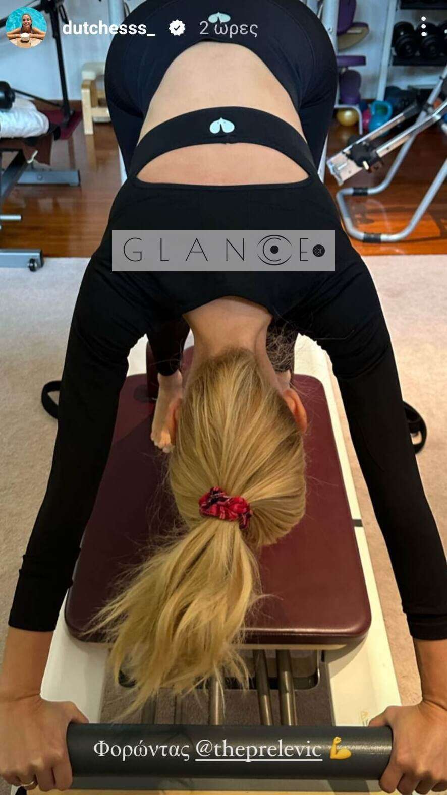 Η Δούκισσα Νομικού κάνει pilates και συγκεκριμένα στα ειδικά κρεβάτια, ένα είδος άσκησης ιδανικό για γυναίκες, ανεξαρτήτως ηλικίας και φυσικής κατάστασης.