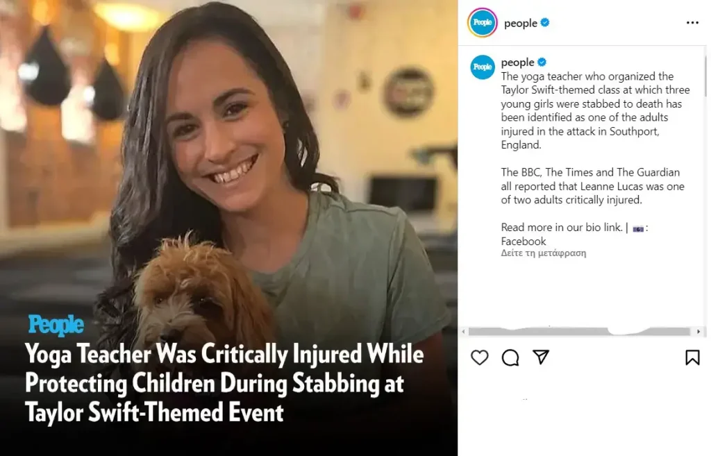 Μια ηρωική δασκάλα γιόγκα στη Βρετανία χρησιμοποίησε το σώμα της ως ασπίδα για να προστατεύσει δύο μικρά κορίτσια από έναν μαχαιροβγάλτη κατά τη διάρκεια της φρικτής επίθεσης σε χώρο εκδήλωσης με ανήλικα παιδάκια 4-10 ετών, όπου έκαναν μαθήματα χορού. Η 35χρονη γυναίκα τραυματίστηκε σοβαρά στα χέρια, την πλάτη και τον λαιμό καθώς υπερασπίστηκε τα παιδιά.