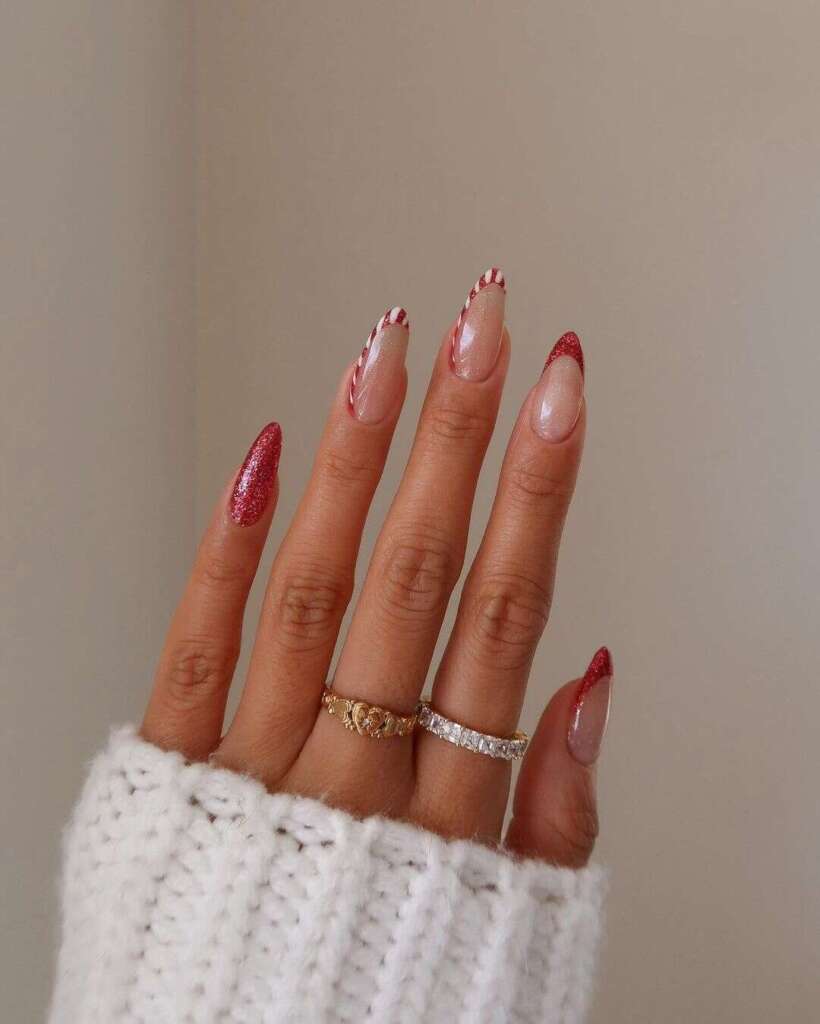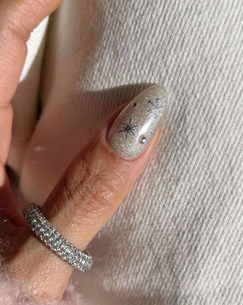 Δεν χρειάζεται να δημιουργήσεις πολύπλοκα σχέδια στα νύχια σου για να έχεις ένα χριστουγεννιάτικο μανικιούρ. Απλά μπορείς να χρησιμοποιήσεις ένα απλό βερνίκι με glitter, το οποίο θα αναδείξει ακόμα και το φυσικό χρώμα των νυχιών σου. Απλώς το βάφεις στα νύχια σου, το σφραγίζεις με ένα top coat και… το αποτέλεσμα είναι έτοιμο!