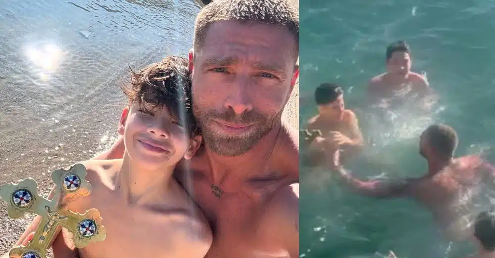 Όταν ο ιερέας έριξε τον σταυρό στο νερό, ο Γιώργος Μανίκας έκανε ένα μακροβούτι προκειμένου να βρεθεί μπροστά στο παιδί με το μπλε μαγιό, το οποίο ήταν έτοιμο να πάρει τον Σταυρό και στη συνέχεια να τον δώσει στον γιο του. Στα social media ακολούθησαν πολύ έντονες αντιδράσεις!