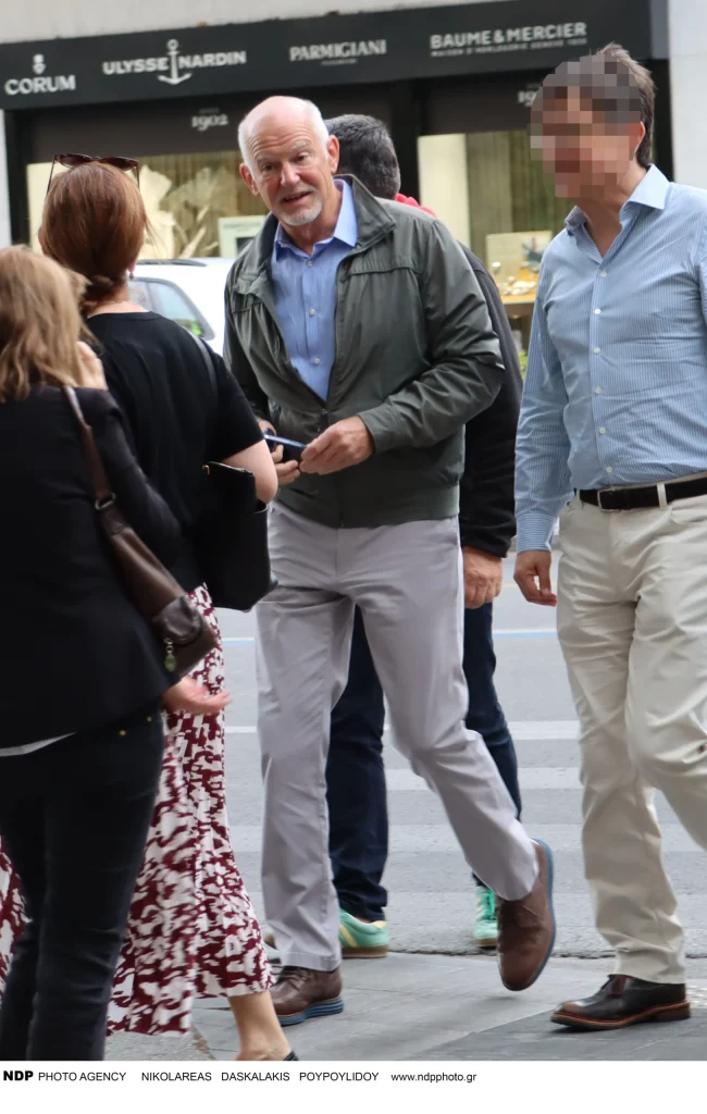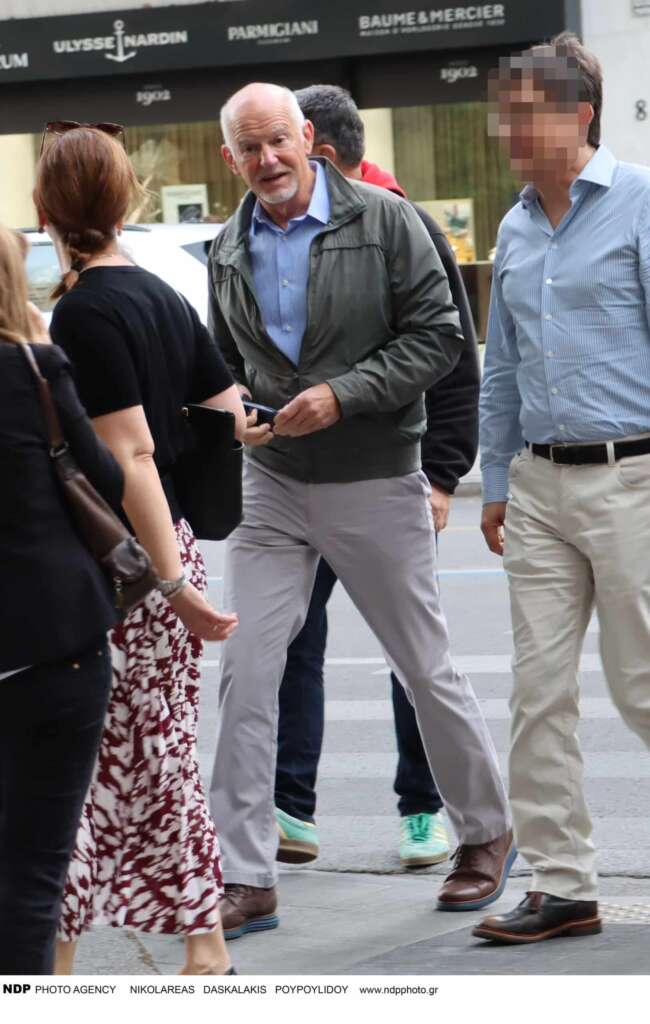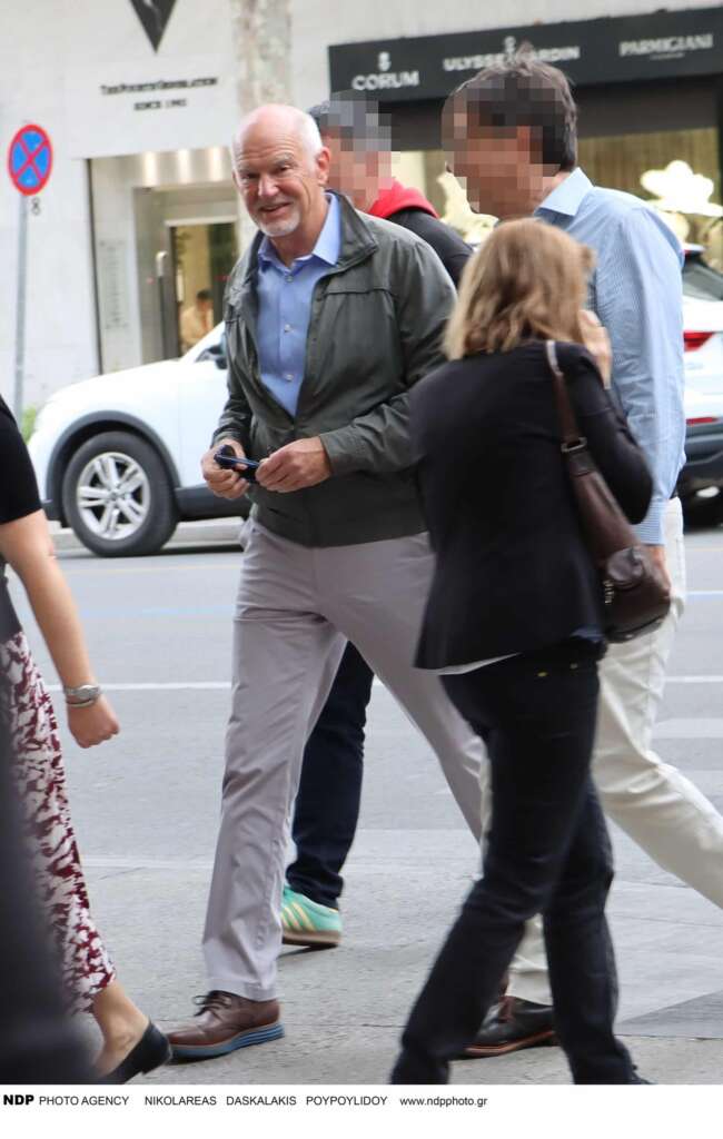 Ντυμένος κομψά ο πρώην Πρωθυπουργός συνοδευόμενος από τους προσοπικούς του σωματοφύλακες τράβηξε τα βλέμματα όλων καθώς περπάτησε στο κέντρο της Αθήνας χαμογελαστός και ευδιάθετος.