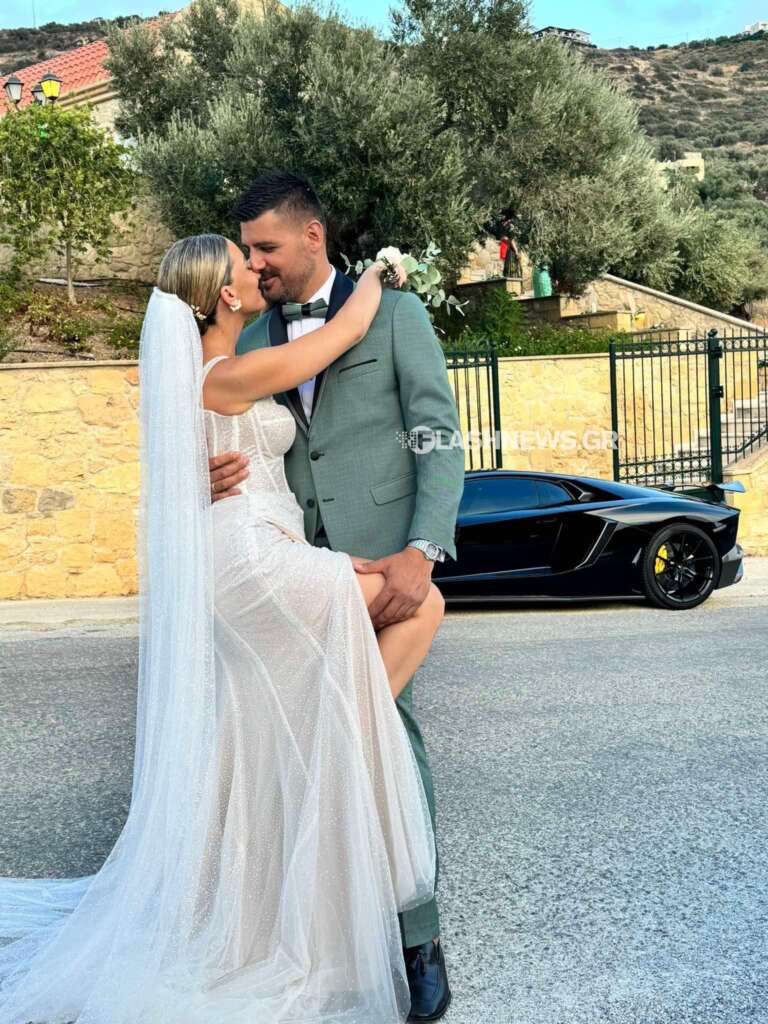 Το Σάββατο 31 Αυγούστου το ζευγάρι ενώθηκε με τα ιερά δεσμά του γάμου στα Χανιά, ωστόσο το γεγονός που έκλεψε τις εντυπώσεις ήταν το αυτοκίνητο με το οποίο η νύφη έφτασε στην εκκλησία.