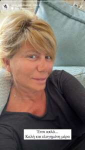 Από τις αναρτήσεις που κάνει η παρουσιάστρια στο instagram, φαίνεται ότι χαλαρώνει με την πραγματική έννοια της λέξης, αφού σε όσες φωτογραφίες της έχει δημοσιεύσει στον προσωπικό της λογαριασμό, τη βλέπουμε να χαμογελάει άβαφη στον φακό.
