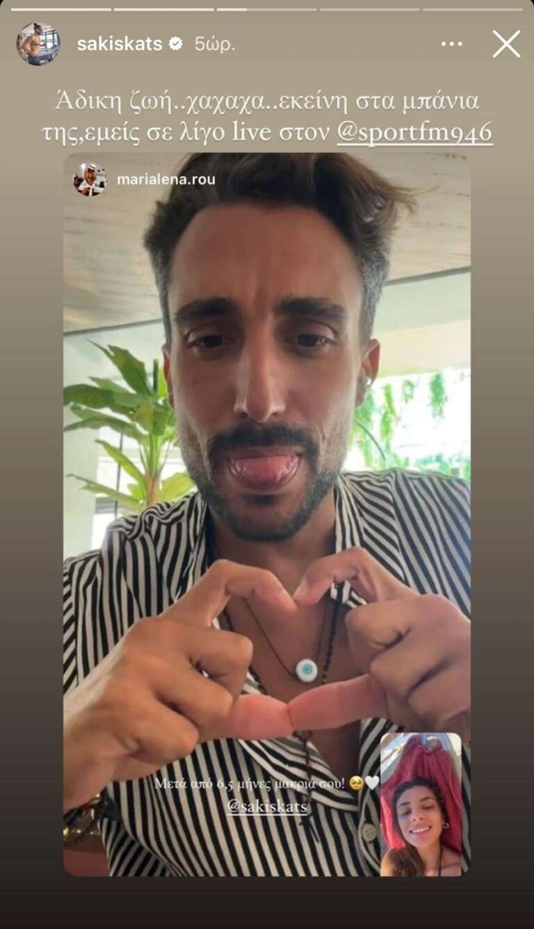 Η Μαριαλένα Ρουμελιώτη έκανε μια ανάρτηση στον προσωπικό της λογαριασμό στο Instagram, στην οποία απαθανάτισε ένα στιγμιότυπο από την βίντεο κλήση που είχε με τον Σάκη Κατσούλη.