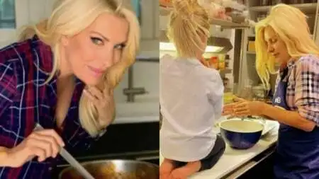 «Χθες έφτιαξα ρεβίθια στο σπίτι. Ήταν φανταστικά, έχω γίνει η καλύτερη. Έχω κάνει πολλά πράγματα, αλλά ας μην πούμε τη δικιά μου συνταγή, είμαι καταπληκτική! Τρώνε τα παιδιά μου και χαίρομαι! Εγώ τα έβαλα πέντε ώρες στους 140 βαθμούς μέσα σε γάστρα μαντεμένια, δεν έχω πήλινη. Είχα κάποτε, μου είχαν στείλει μία από τη Σίφνο, αλλά δεν ξέρω, μου έσπασε, χάθηκε…», είπε χαρακτηριστικά.