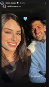 Το ζευγάρι λάμπει απο ευτυχία και η Σπυριδούλα έκανε tag τον σύντροφό της και έβαλε και μια γαλάζια καρδούλα. Λίγο μετά ο Μπακασέτας που ετοιμάζεται για το παιχνίδι της Τετάρτης με τον Παναθηναϊκό στο Κύπελλο ανέβασε και αυτός τη φωτογραφία στον δικό του λογαριασμό και έβαλε και αυτός μια γαλάζια καρδούλα.