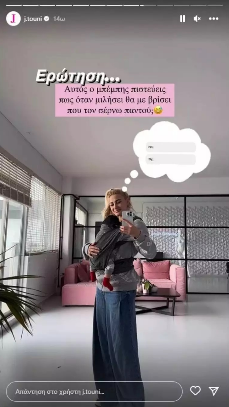 Προφανώς δεν θα μπορούσε να λείπει η Ιωάννα Τούνη από την συγκεκριμένη “λίστα” καθώς το παιδί της την συνοδεύει σχεδόν παντού. Δεν το αφήνει από τα μάτια της καθώς όπως και η ίδια έχει δηλώσει δεν υπάρχει κάποιο συγγενικό πρόσωπο κοντά ώστε να την βοηθήσει. Σε μια πρόσφατη ανάρτησή της μάλιστα δημοσίευσε ένα βίντεο όπου έχει επισκεφθεί την βιοτεχνία ρούχων της.